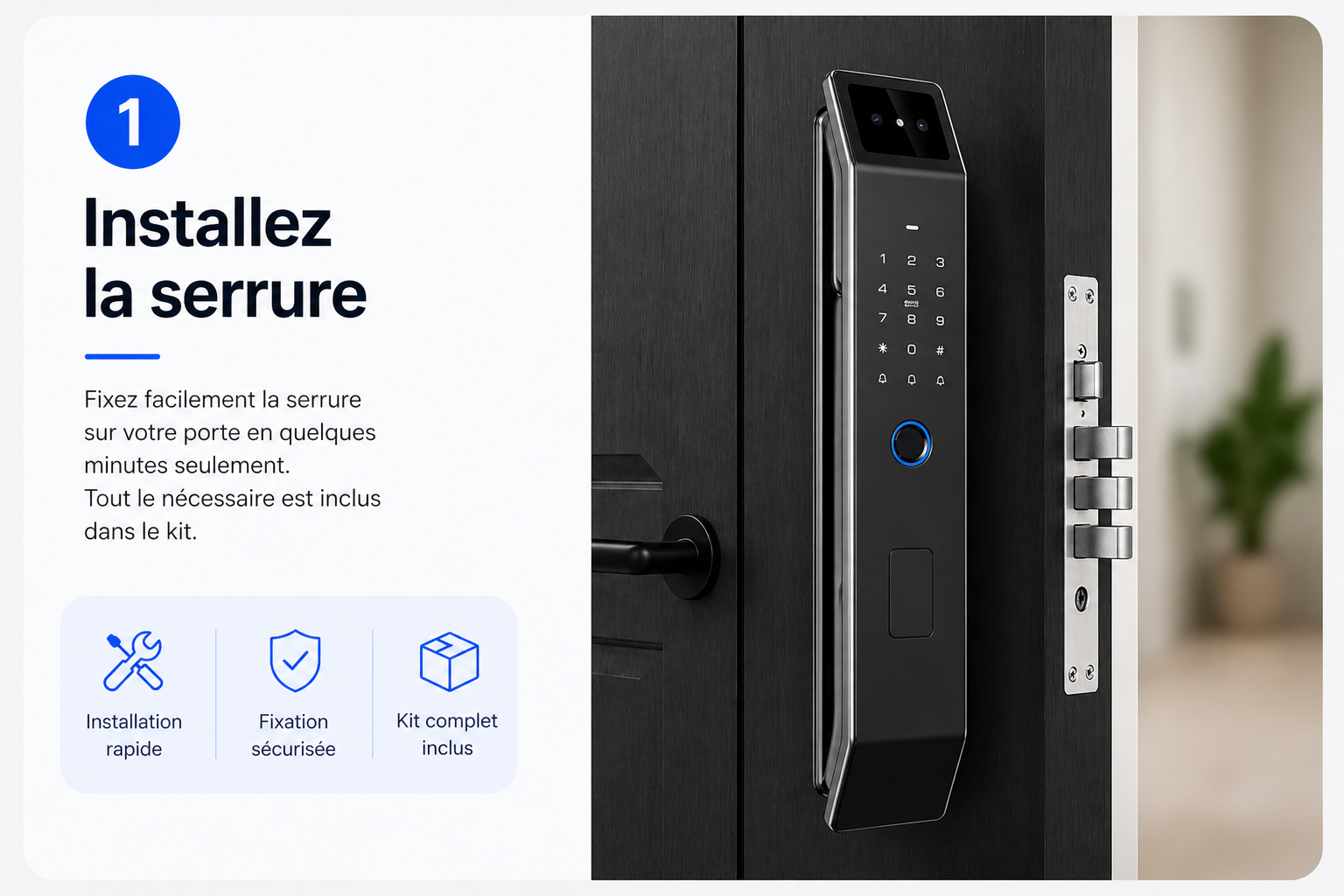 Aucune compétence technique requise . Installez votre serrure en quelques minutes seulement.